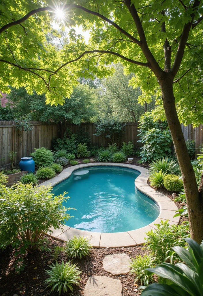 Embrace sustainable landscaping practices to create an eco-friendly small backyard pool area.